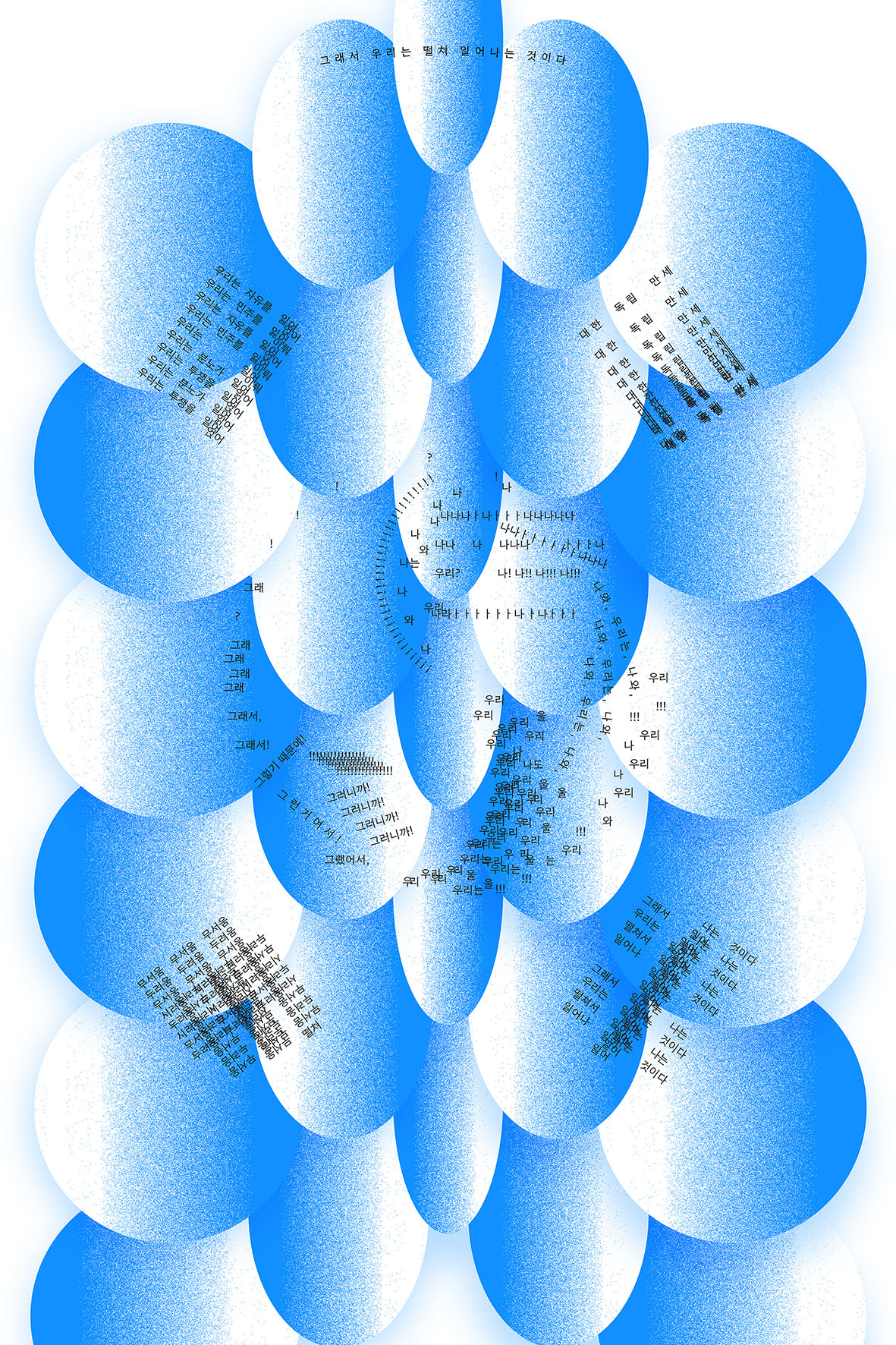‘독립을 향한 자주적인 민중의 목소리’를 주제로 점묘법을 활용한 태극기 포스터를 디자인했습니다. 3.1운동은 후손의 미래를 위해 자신의 목소리를 낸 민중의 자주적 혁명이자, 식민지 조선이 독립국가로 나아가는 초석이 되었다고 생각합니다. 이에 따라, 신분과 성별을 뛰어넘어 독립을 위해 모인 민중을 ‘뚜렷한 목소리를 내는 작지만 강한 집단’으로 해석했습니다.