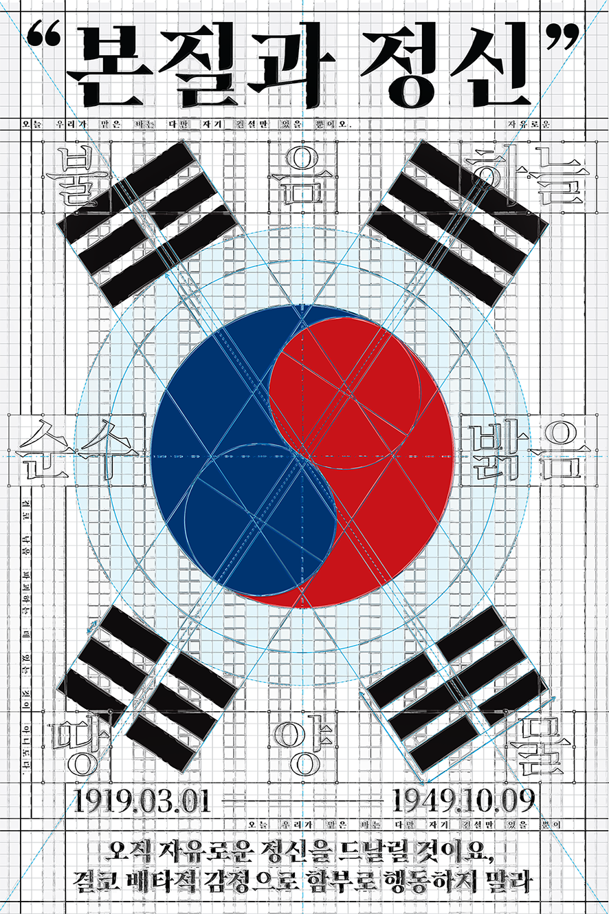 자유롭고 건설적인 정신을 왜곡 없이 기억하자는 의미를 담아, 태극기와 선언문의 의도를 그대로 표현하였습니다.