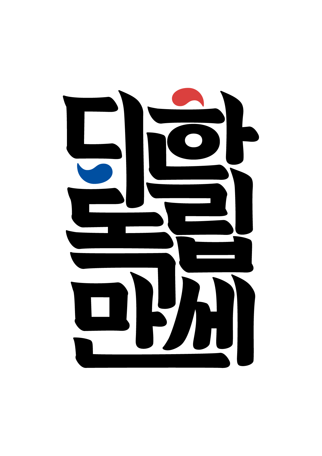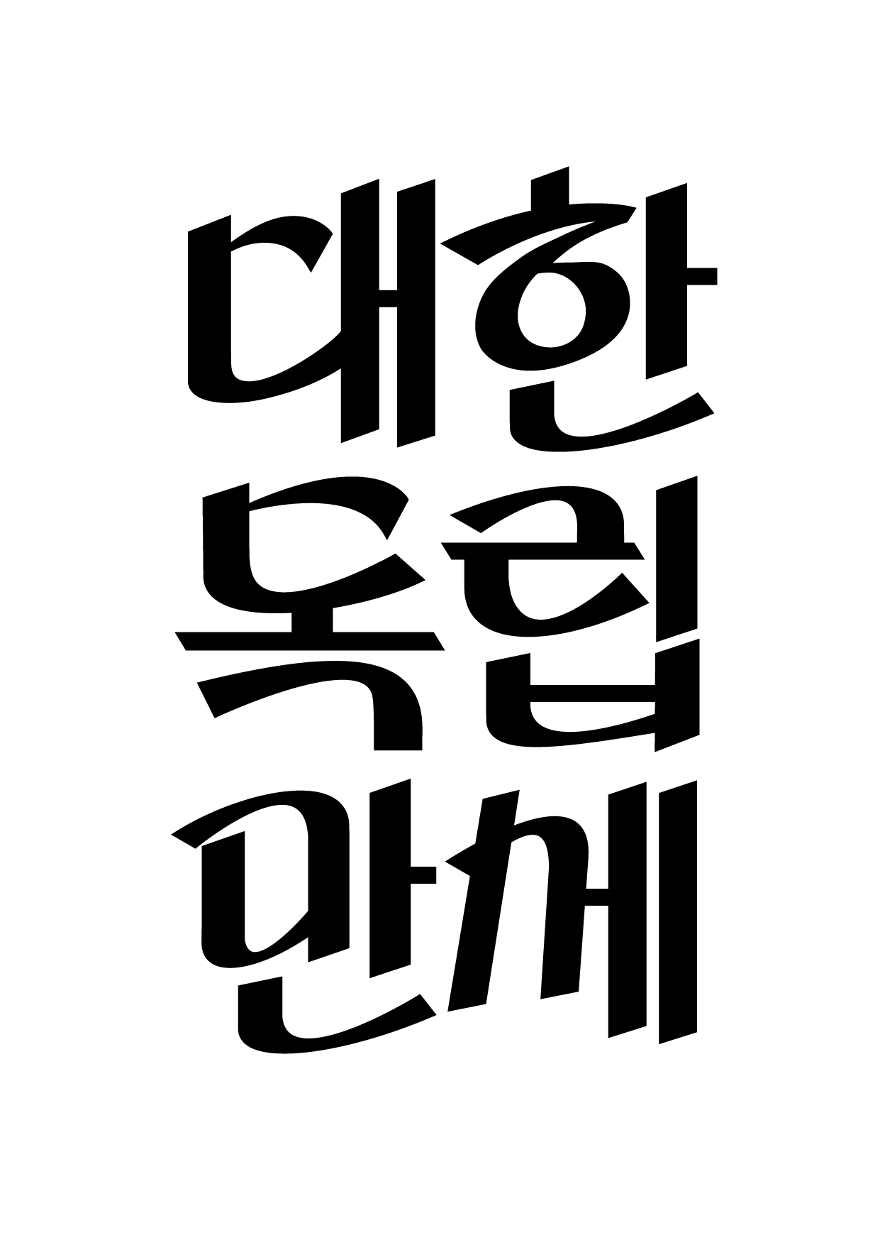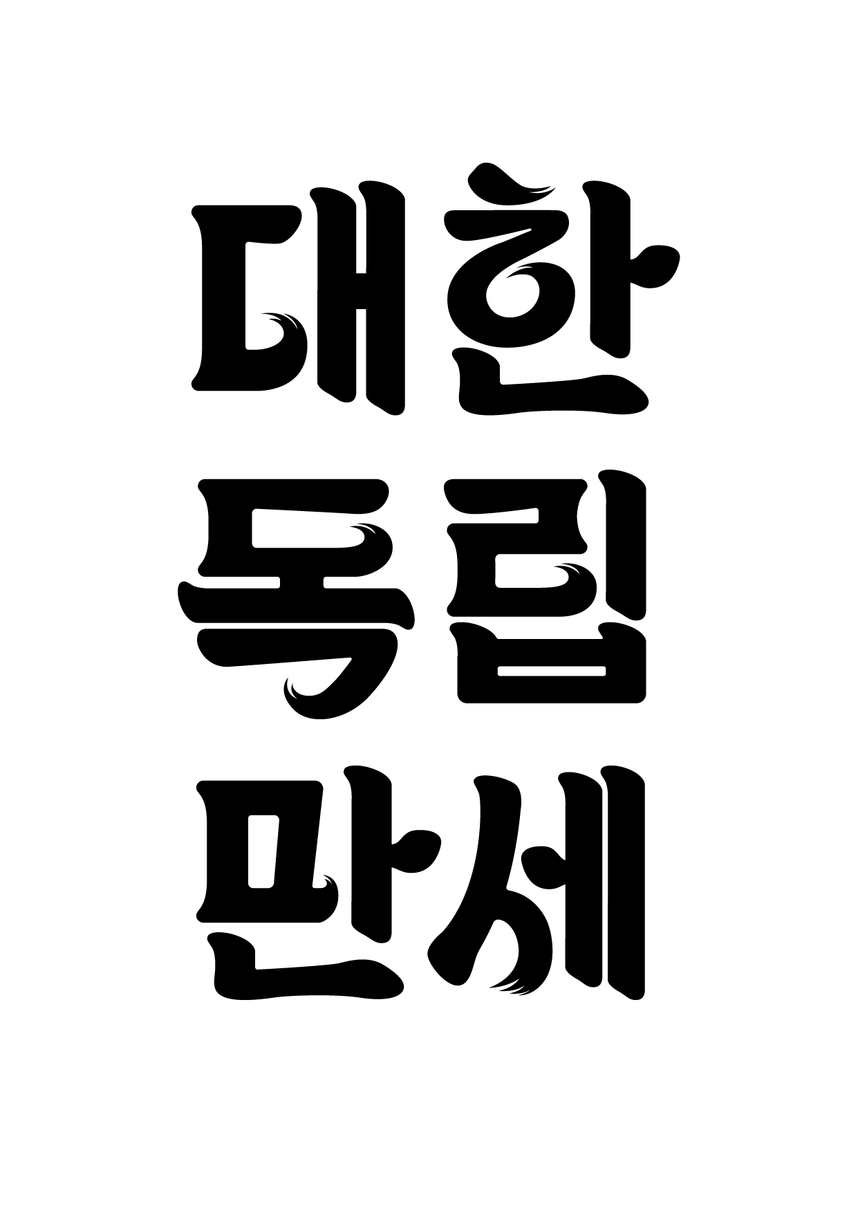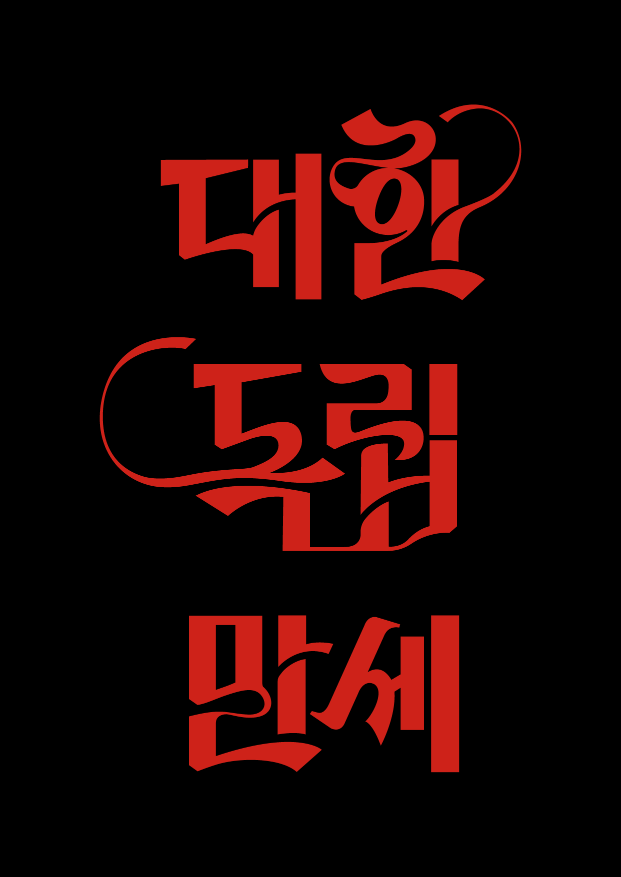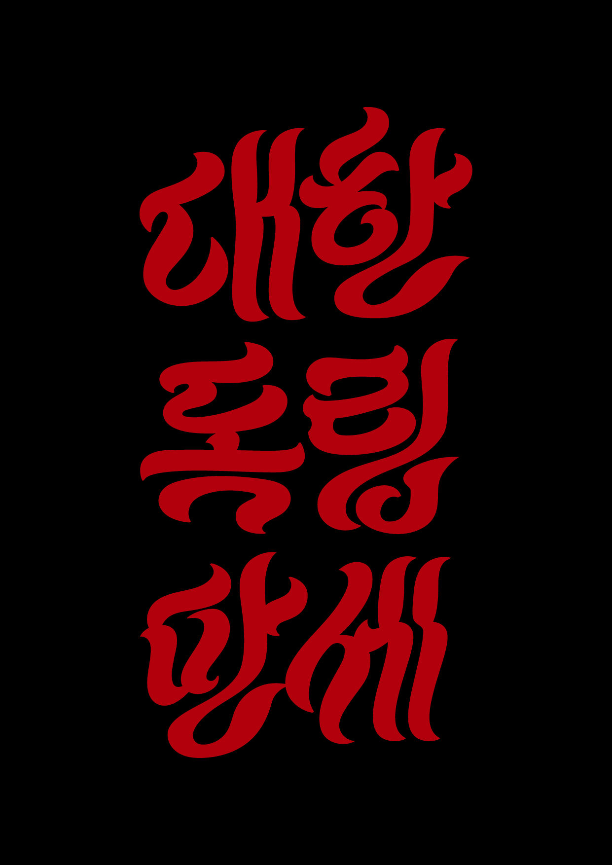 ‘대한 독립 만세’를 한글로 레터링 한다는 것 자체가 곧 우리의 자존심이라는 생각이 들었다. 부드러우면서도 강인한 선을 활용하여 불화 속 구름처럼 흐르면서도, 모두를 이끌고 포용하는 넓은 어깨 같은 글자가 되길 바라며 작업했다.