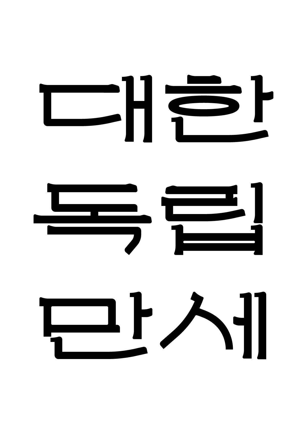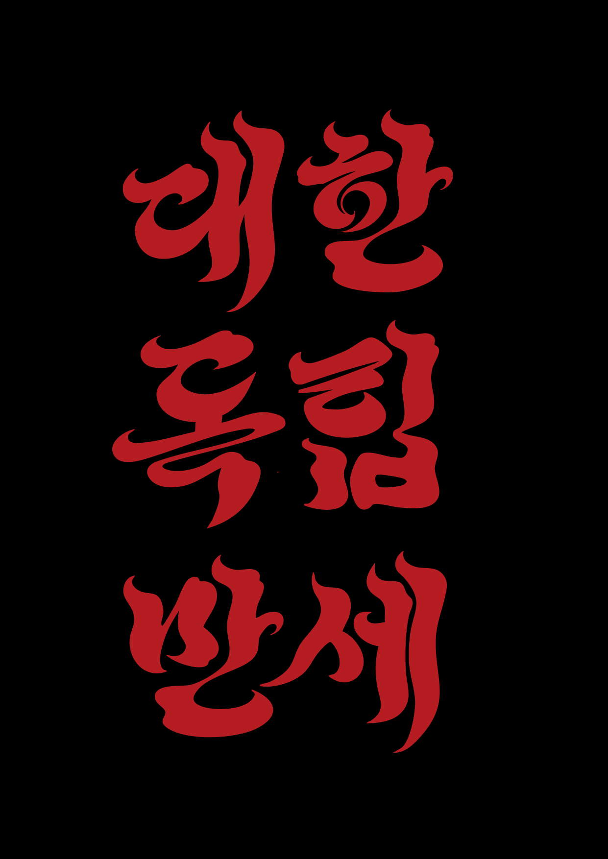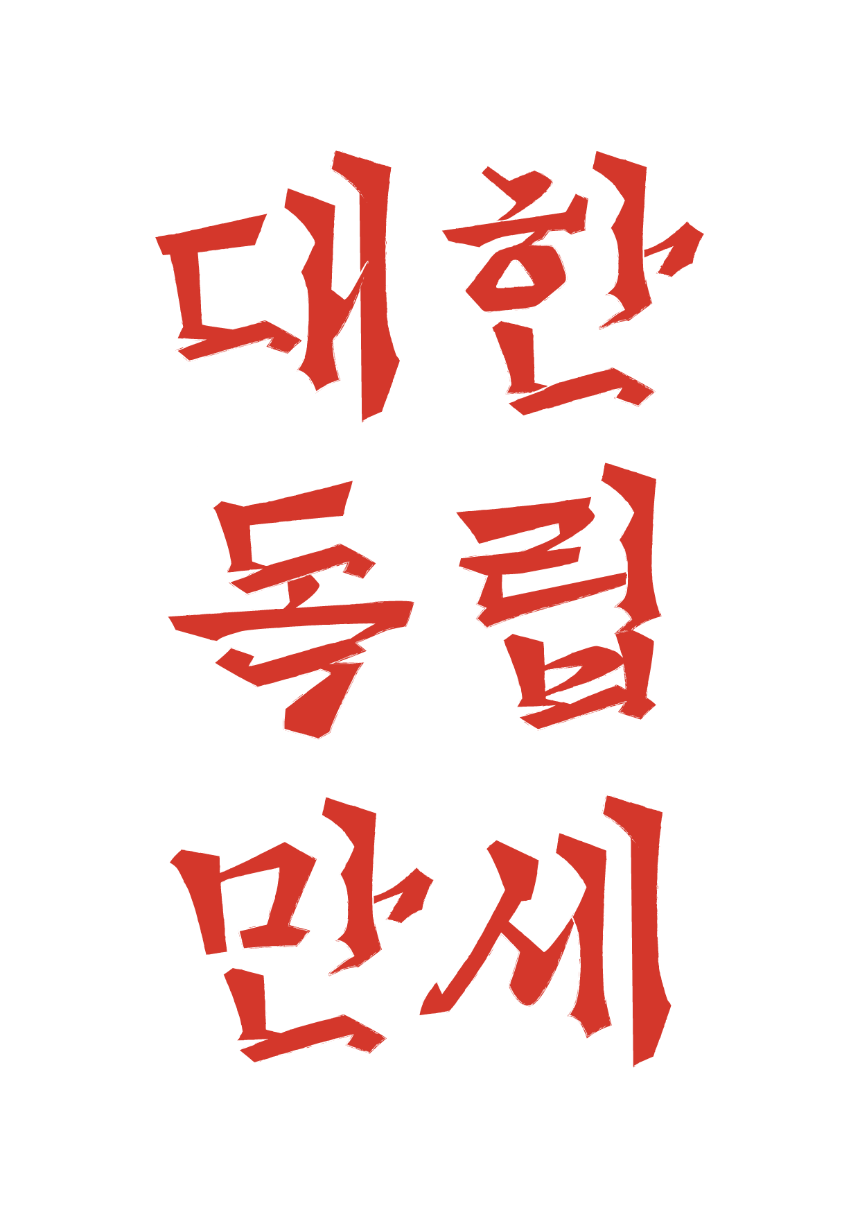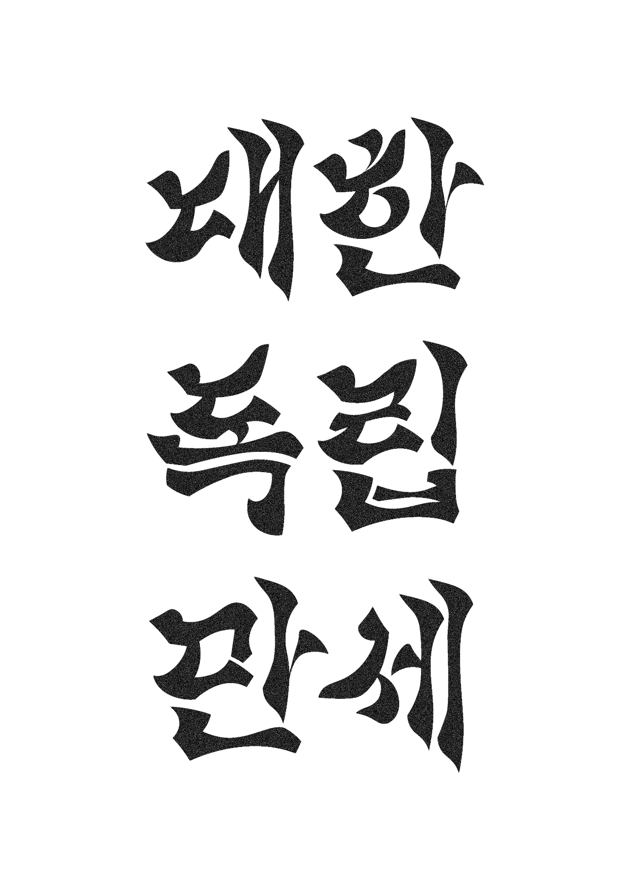 그가 글씨로 독립에 대한 마음을 표현했다면, 꾹 눌러쓴 듯한 강한 결의와 흔들림 없는 신념이 담겼을 것이라 생각했다. 이를 바탕으로 붓의 질감을 참고해 강하고 직선적인 느낌을 구현하고, 곳곳에 가볍게 빠지는 획을 더해 글씨의 생동감과 깊이를 담아냈다.