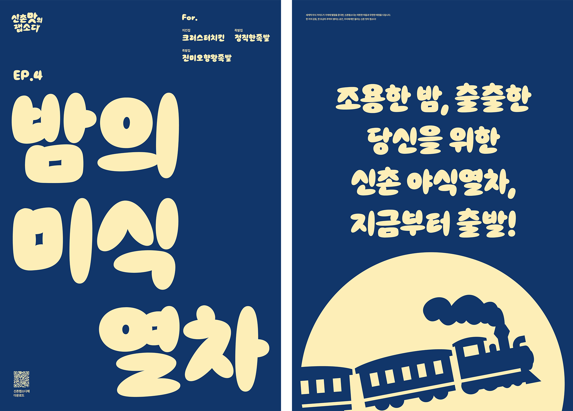 “조용한 밤, 출출한 당신을 위한 신촌 야식 열차, 지금부터 출발!”